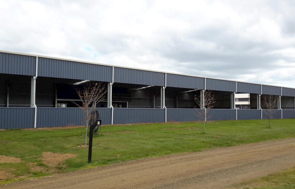 Horse Arenas & Yards – Kilmore Monage sand in an indoor horse arena being laser leveled by the bobcat, then fibre mixed into the sand to complete the surface. Gallery Back