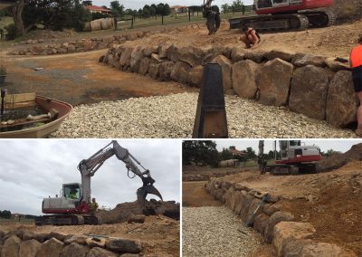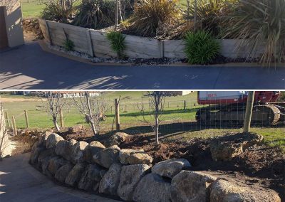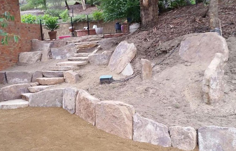 Bluestone rock retaining wall, built to put a feature garden bed behind it. Click here for gallery.